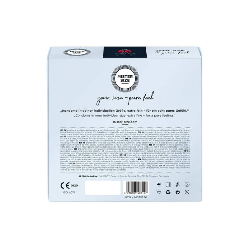 MISTER SIZE pakub ideaalset lahendust meestele, kes soovivad nautida seksi, muretsemata kondoomi sobivuse pärast. Kondoom, mis sobib täiuslikult, tundub nagu teine nahk ja annab võimaluse keskenduda täielikult headele tunnetele. MISTER SIZE 60MM on disainitud just neile, kellele standardkondoomid ei sobi, pakkudes ideaalset suurust ja tunnetust.