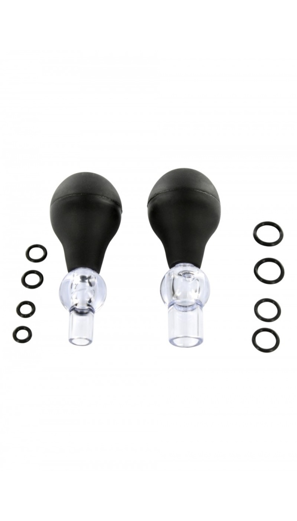Seda võimaldavad kaks nibupumpa 8 asendusrõngaga. Lihtsalt libistage üks rõngastest üle pumba ava ja asetage ava oma nibudele. Seejärel pigistage pumba palliosa. Tundub, nagu imeks teie partner neid õrnalt! Rinnanibud tõusevad tänu vaakumile suurepäraselt püsti ja püsivad püsti ka siis, kui panete kinnitusrõngad ümber nibude. Erineva läbimõõduga avadega nibupump: 0,7 cm ja 1,1 cm. Kinnitusrõngad neljas erinevas suuruses: läbimõõt 2 x 0,5 cm, 0,7 cm, 1 cm ja 1,2 cm (kergelt venivad). 10-osaline komplekt.