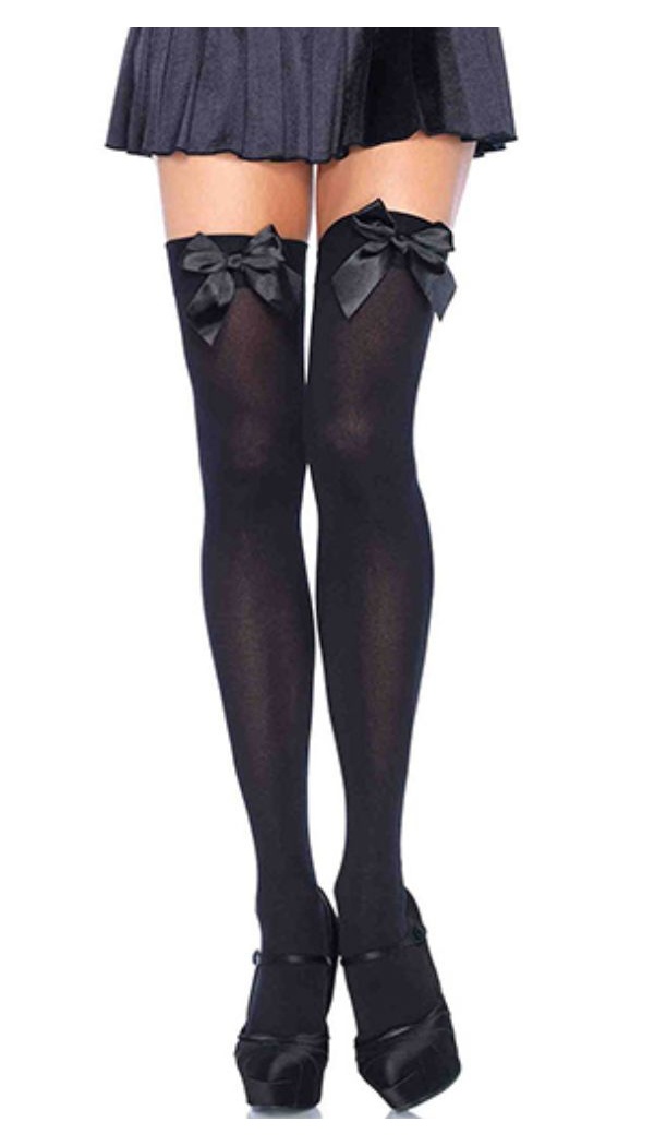 NYLON THIGH HIGHS WITH BOW O/S – чёрные нейлоновые чулки с бантиками