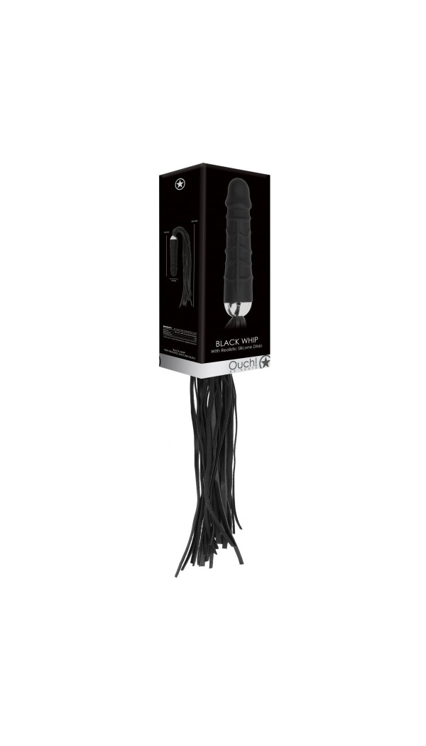 OUCH! BLACK WHIP WITH REALISTIC SILICONE DILDO