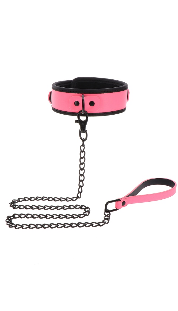 PINK GLOW IN THE DARK COLLAR & CHAIN LEASH