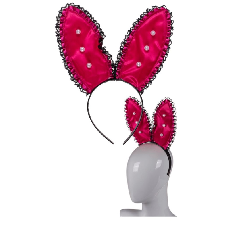 Roosa, pärlitega kaunistatud jänkukõrvakestega peavõru.