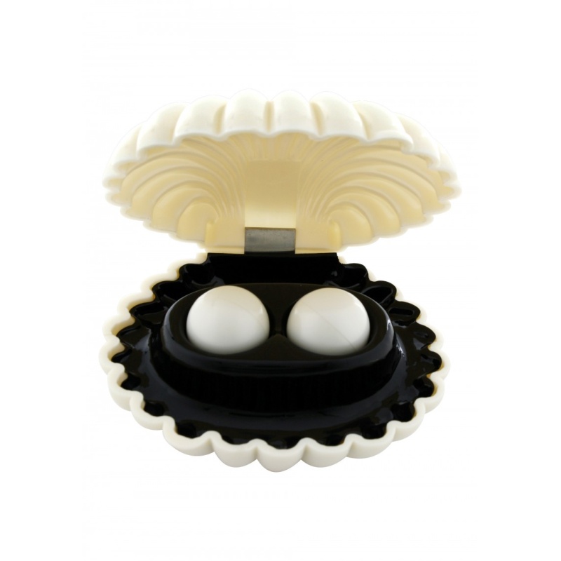 Plastmassist kattega ja kenas teokarbikujulises hoiukarbis tupekuulid lihaste treenimiseks.