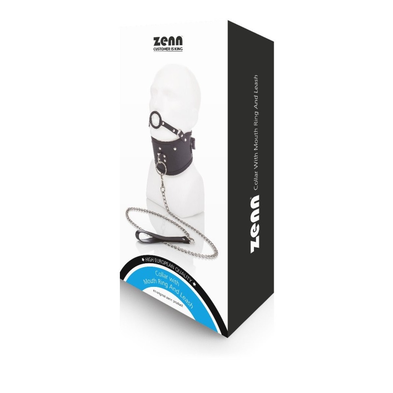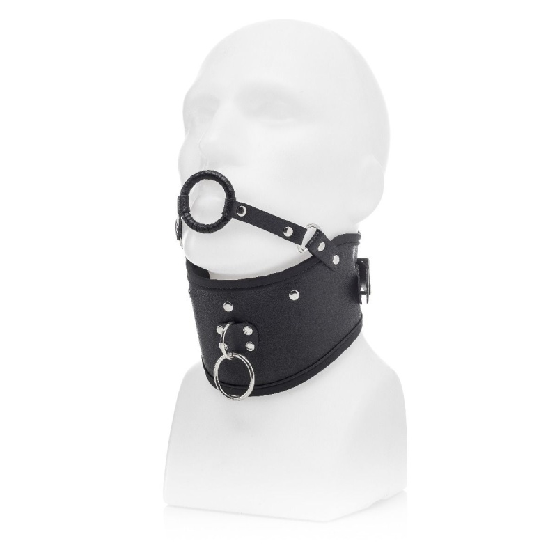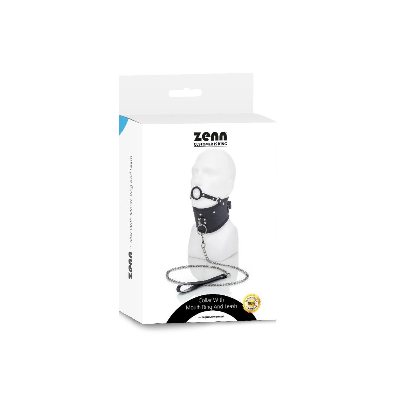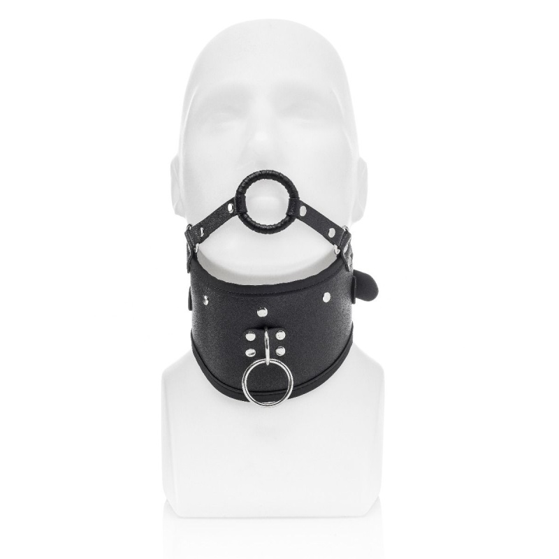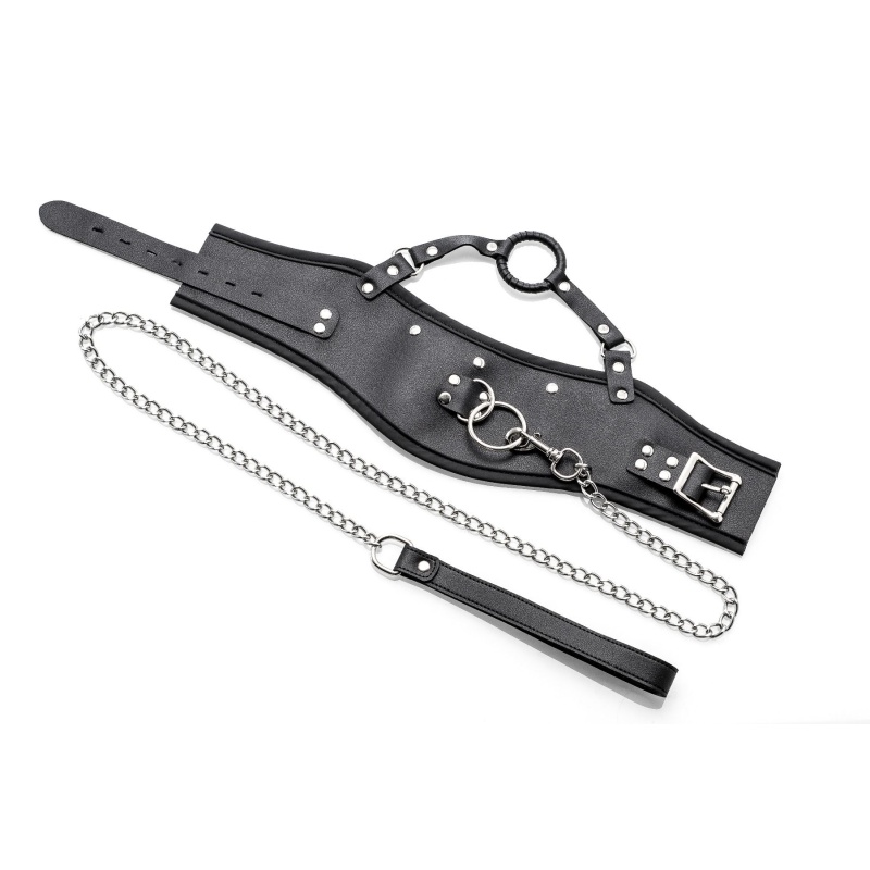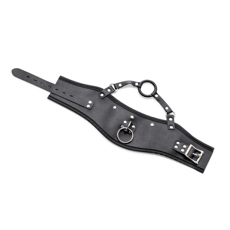 Vegan Leather Posture Collar with Leash and open mouth gag by ZENN