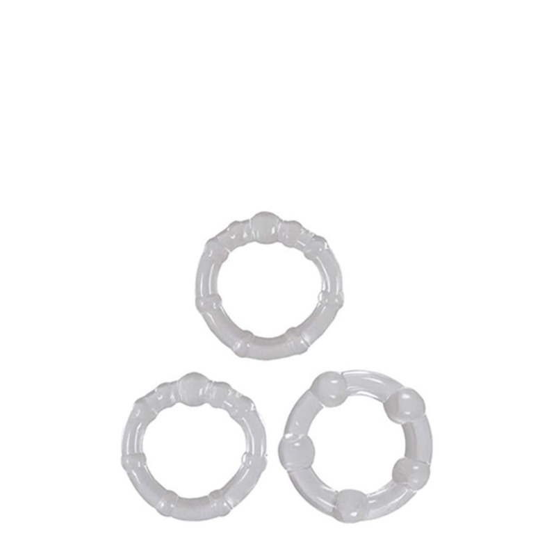 Kolm erineva läbimõõduga mummulist ja hästi venivat peeniserõngast pikema ja parema erektsiooni tagamiseks.