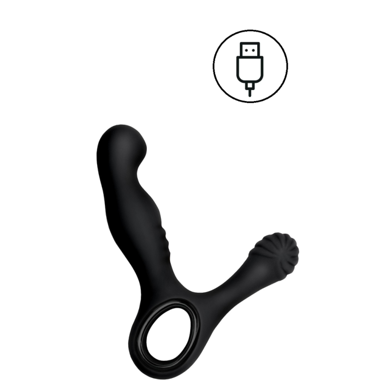 Mustast silikoonist eesnäärme masseerija, mille kaks mootorit stimuleerivad nii eesnääret, kui ka lahkliha ja munandeid. Eesnääre ja vahelihas mängivad mehe orgasmi saavutamisel väga tähtsat rolli. Mugav sõrmeaas kergendab sisestamist ja eemaldamist.