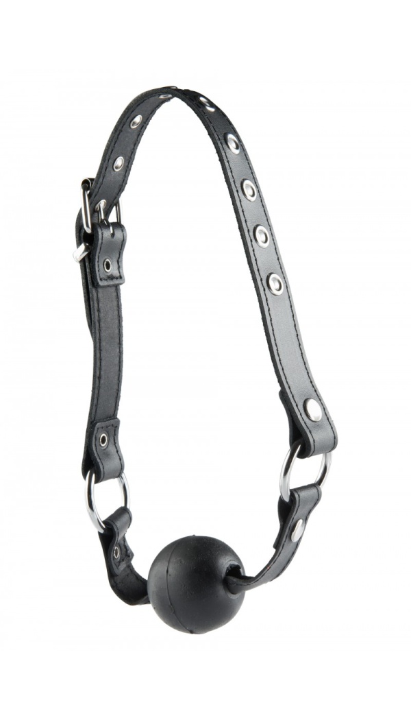 RUBBER BALL GAG ON LEATHER STRAP