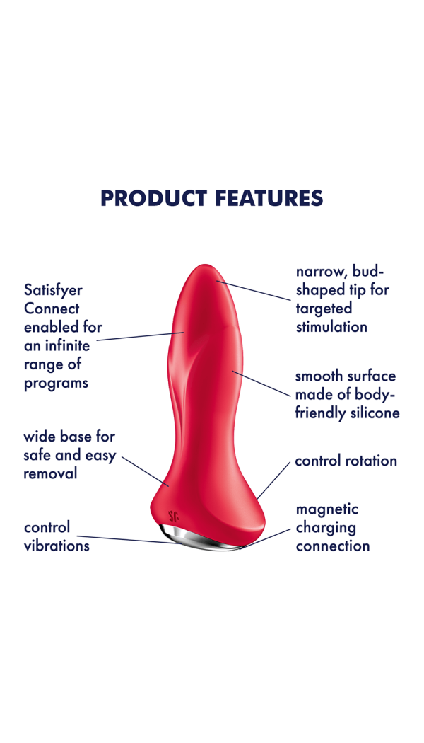 Satisfyer Rotator Plug 1+ Connect App viib anaalnaudingud täiesti uuele tasemele, ühendades kahekordse stimulatsiooni võimsate vibratsioonide ja sisemiste pöörlevate kuulikeste liikumise kaudu. Tänu kitsa koonilise otsa ja laia aluse disainile on pistikut lihtne sisestada ja see püsib turvaliselt paigal.