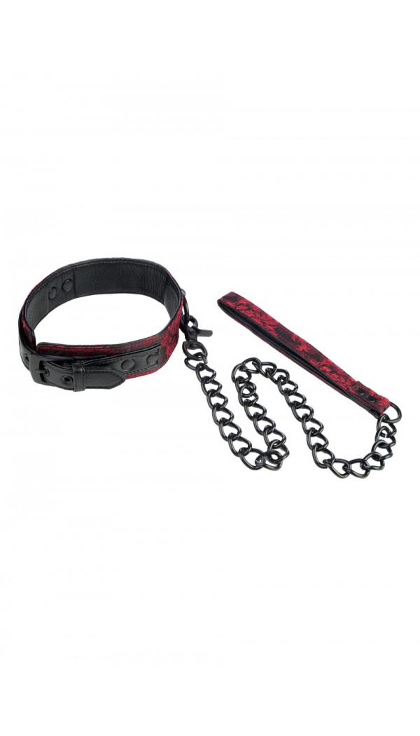 Peal punase-mustakirju läikiv kangas, sees pehme kunstnahk. Kett, needid ja kinnituspannal metallist.