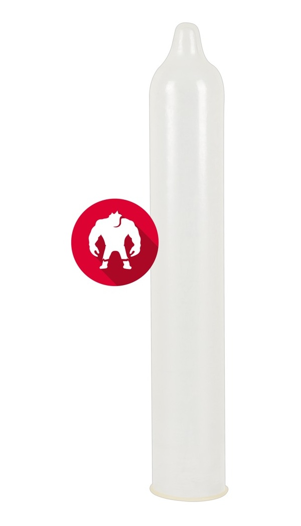 Tavalisest kondoomist suurem, sirge, naturaalset värvi kondoom. Niisutatud silikoonlibestiga.