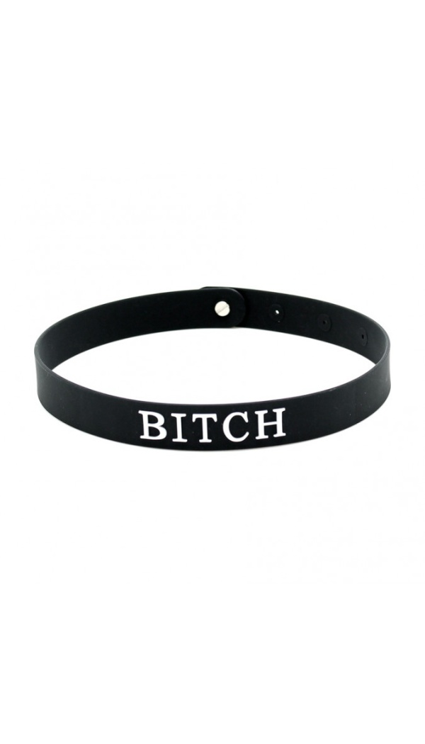 Pehmest silikoonist, reguleeritava pikkusega kaelarihm tekstiga BITCH.