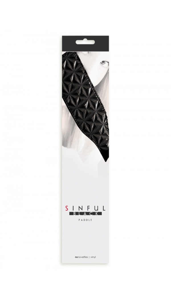 Kauni mustriga musta värvi laksuti, mis on valmistatud nahast ja vinüülist.