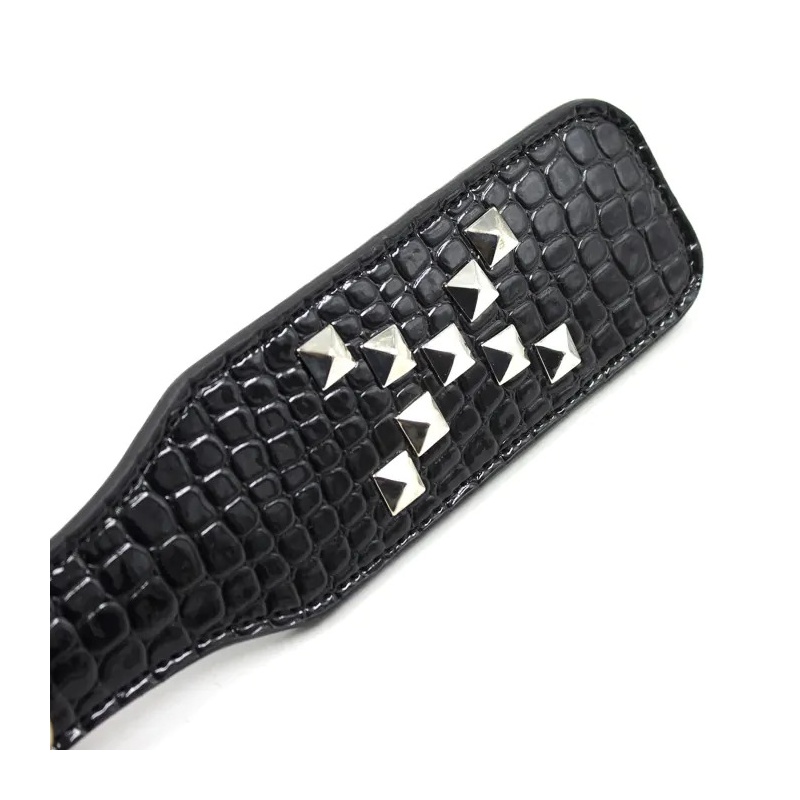 See must kvaliteetsest vegan-nahast paddle on ideaalne edasijõudnud mängijatele, kes soovivad erinevaid stimulatsioonitasemeid. Üks pool on sile, ideaalne soojenduseks ja mõõdukamaks nahaga kokkupuuteks. Teisel poolel on metallist needid, mis lisavad intensiivsema löögitunde. Alusta mängu pehmema poolega ja keera paddle ümber, kui soovid tempot tõsta ja mängu kuumemaks muuta.