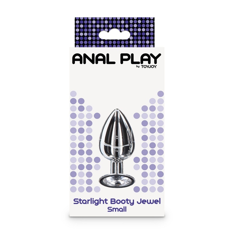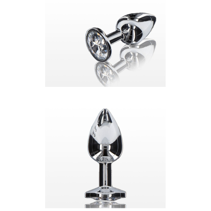 Kergest alumiiniumist, hõbedane, suure sädeleva kivikesega anaaltapp.