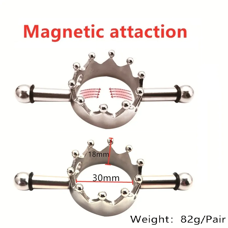 Steel Magnetic Crown Nipple Clamps on elegantsed ja jõulised nibu klambrid, mille disain meenutab kroonide kujundust. Need klambrid kasutavad tugevaid magneteid, mis loovad intensiivse surve, pakkudes unikaalset ja võimendatud kogemust.