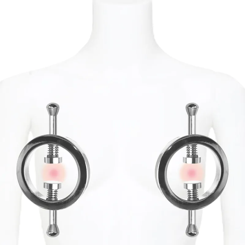 Steel Round Nipple Clamps on kvaliteetsest roostevabast terasest valmistatud ümmargused nibu rõngad, mis ühendavad minimalistliku disaini ja intensiivse stimulatsiooni. Tänu rõnga sees asuvatele vedrumehhanismiga telgedele tagavad need tugevama surve ja unustamatu naudingu.