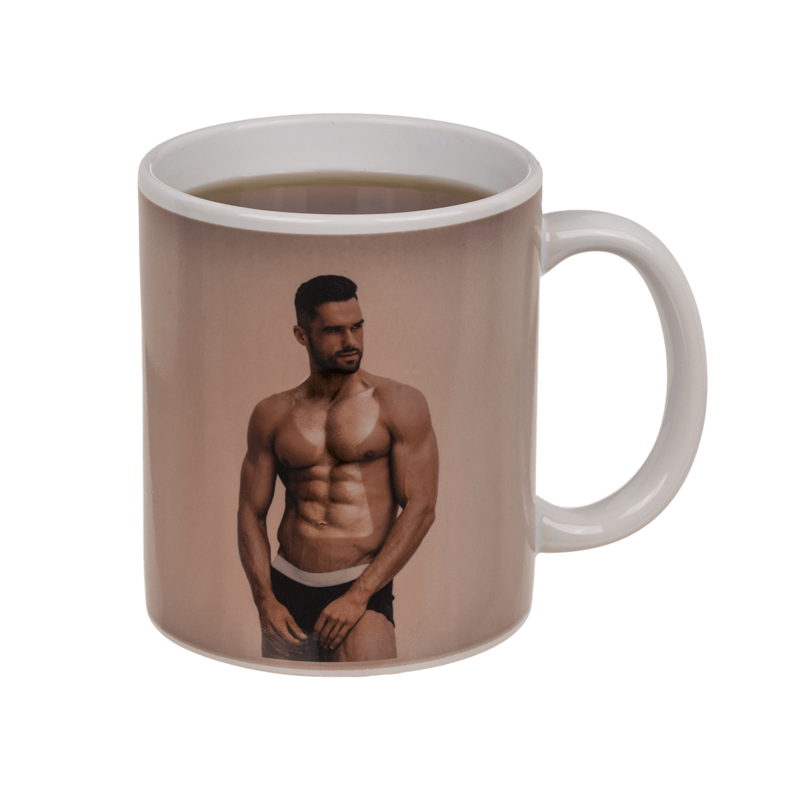 Kruus STRIPPER BOY, mis reageerib kuumusele. Külmalt on pealispind must ja vaid lukuaugust saab piiluda musklis mehekeha, kuuma joogi mõjul muutub kõik nähtavaks...