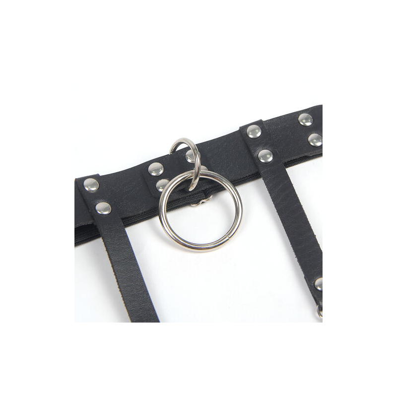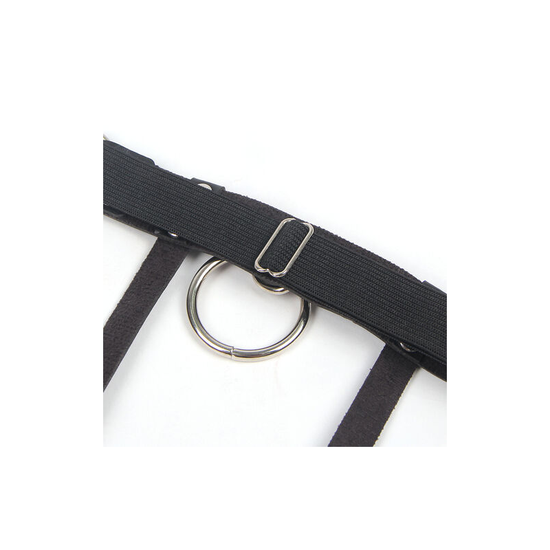 Этот подвяз-гартер создан для тех, кто любит подчёркивать линии тела и добавлять в образ немного дерзкого, фетишного стиля. Модель выполнена из чёрной PU-кожи и дополнена металлическими элементами и круглым кольцом в центре — простой, но эффектный акцент, который делает ногу визуально стройнее и притягивает взгляд.