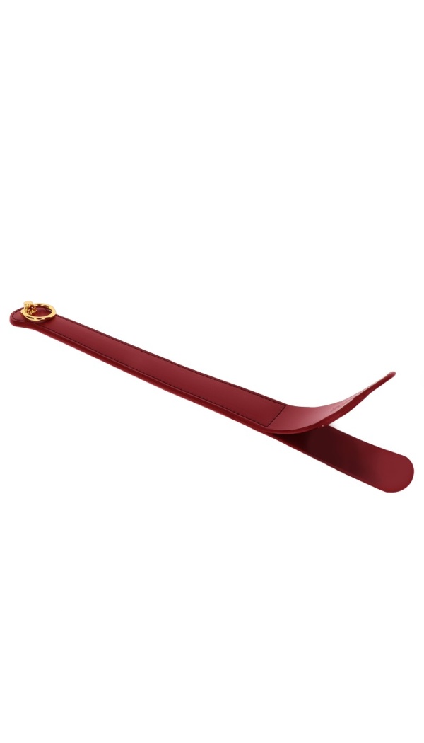 Punasest kunstnahast topeltotsaga laksuti, millel on otsas kuldne metallrõngas riputamiseks.