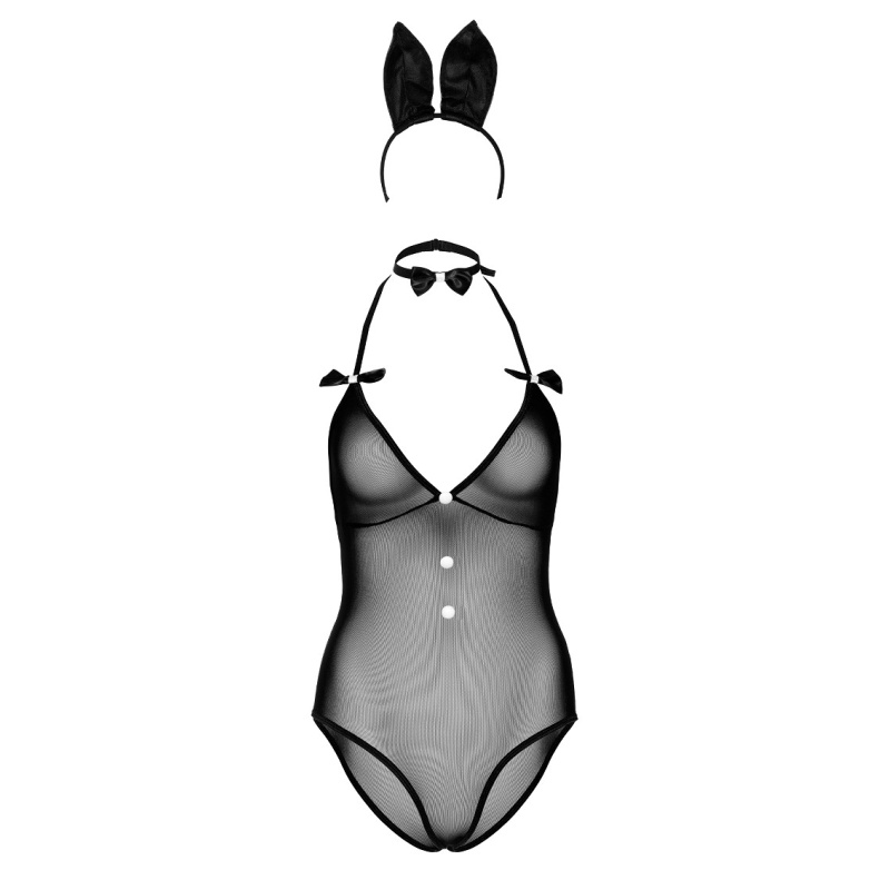 Classic Bunny Roleplay Set - rollimängu komplekt, mis sisaldab pehmet, läbipaistvat tüllist body koos kikilipsu ja smokinööpidega. Komplekti kuulub ka jänkukõrvadega peavõru.