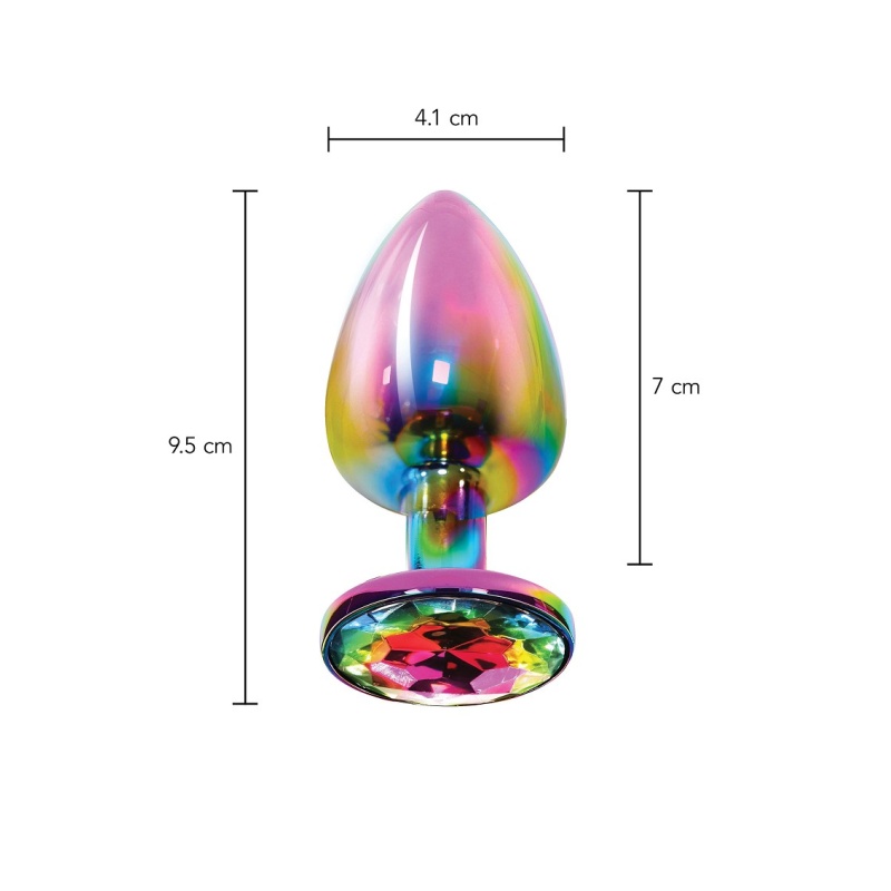 Kergest alumiiniumist ja mitmevärvilise kroomkihiga kaunistatud, suure vikerkaarevärvides sädeleva kivikesega anaaltapp.