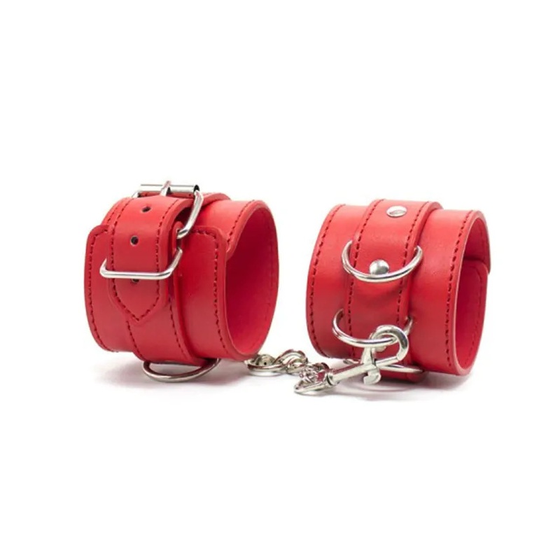 Punasest kunstnahast käe rakmed, reguleeritava pikkusega ja ühendatavad 15 cm pikkuse ketiga.